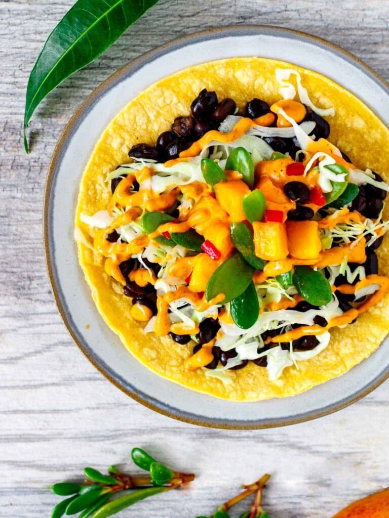7. Black Bean Tacos with Mango Salsa